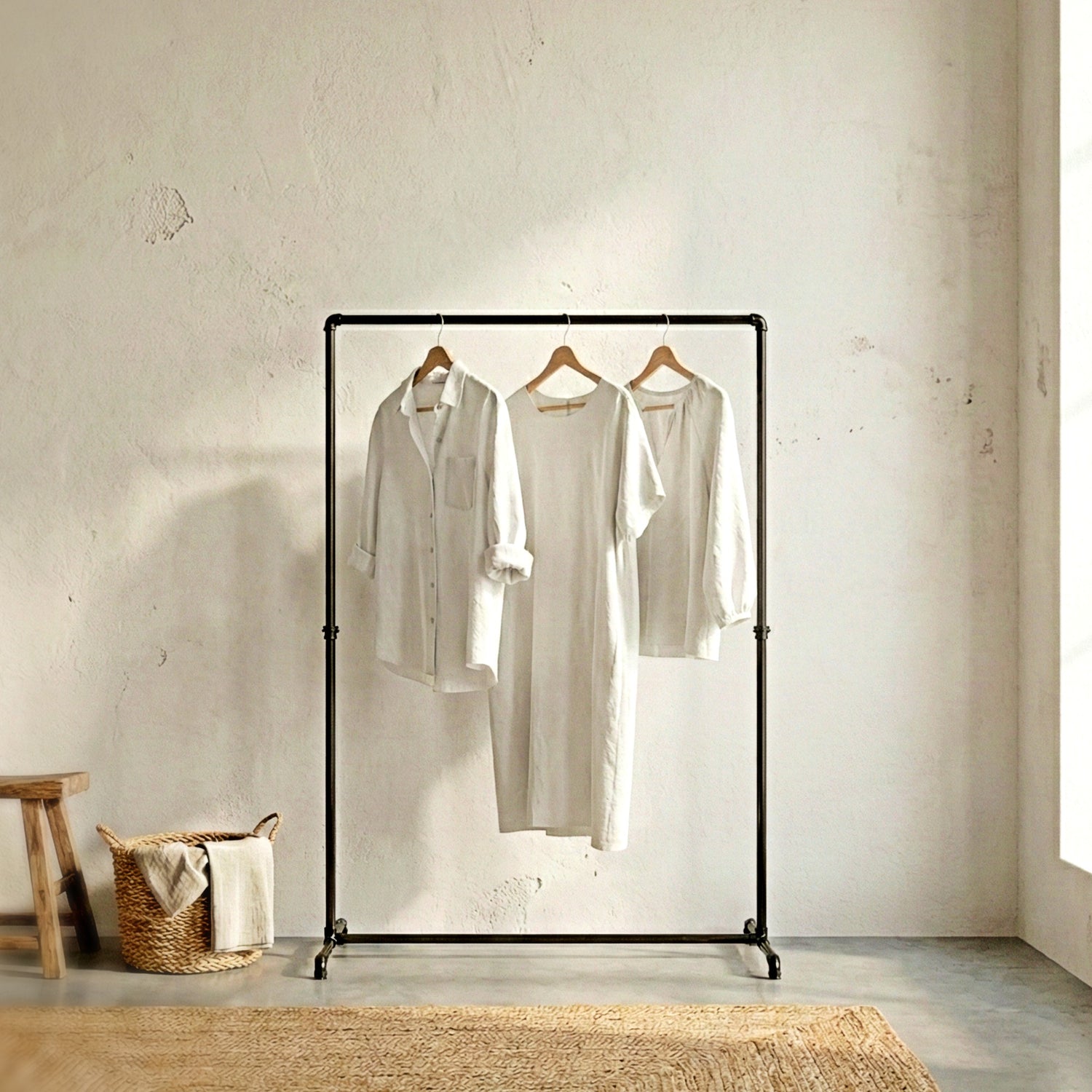 Atención: Este modelo forma parte de nuestra gama "Déco". Es ideal para ropa ligera o un vestidor auxiliar. Para cargas muy pesadas (abrigos de cuero, almacenamiento intensivo), le recomendamos nuestros percheros de auténtica tubería de fontanería.