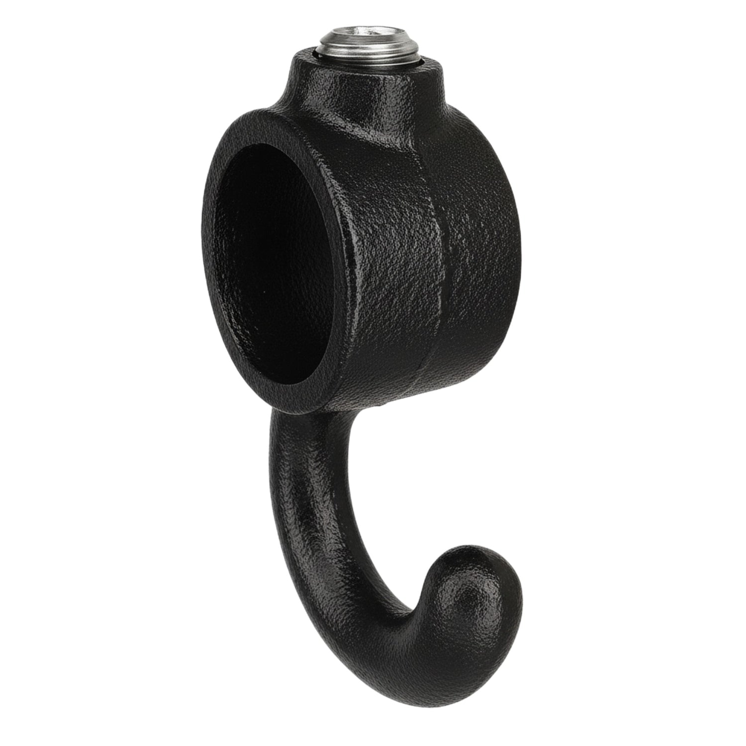 Este gancho de pared negro de la gama “Deco” combina resistencia y estilo industrial. Fabricado en hierro fundido con acabado de pintura negra, permite colgar elementos decorativos en estructuras tubulares con un aspecto sólido y elegante. El apriete se realiza con un tornillo Allen, que garantiza una sujeción segura y discreta.