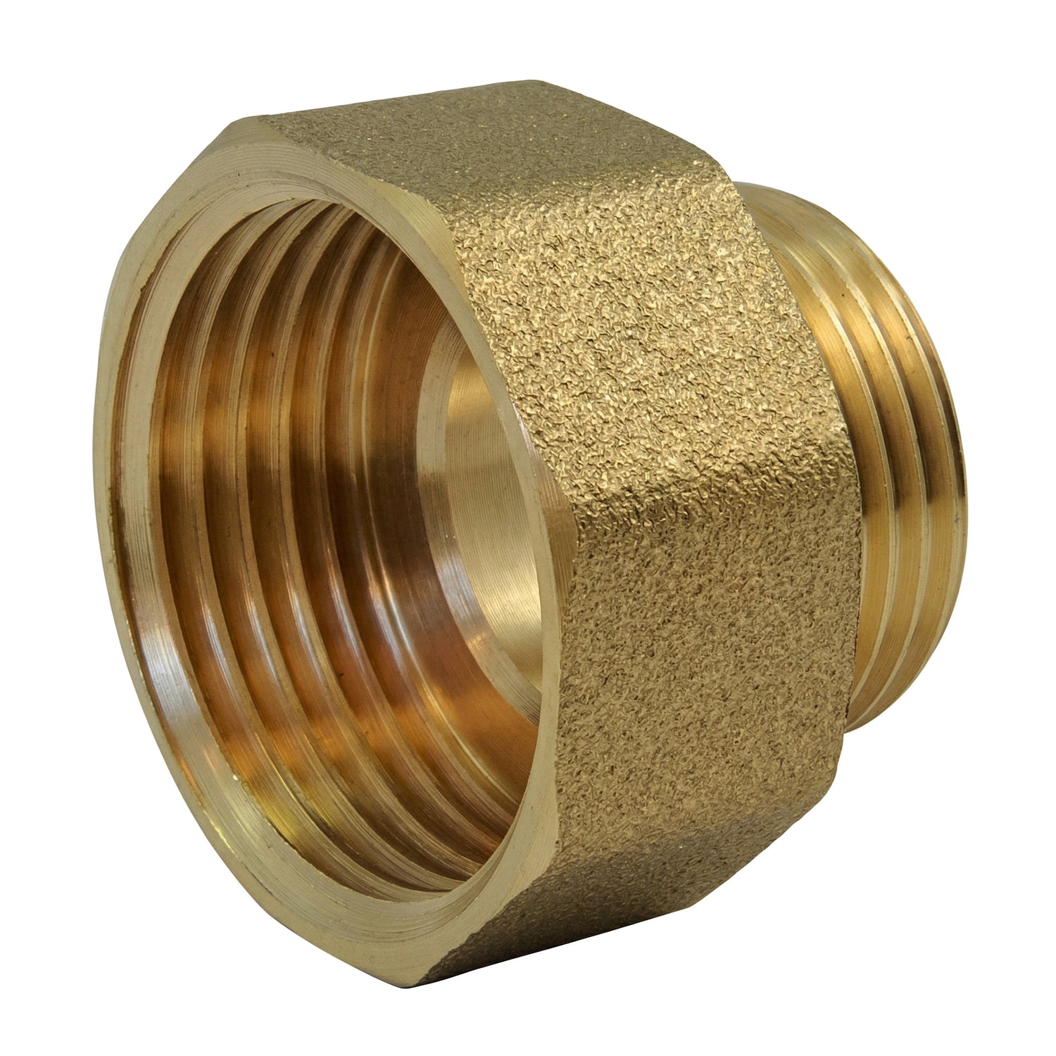 Niple de reducción H/M de latón roscado, que combina un lado hembra (roscado int.) y un lado macho (roscado ext.) de diámetros diferentes. Este racor mixto asegura tanto el cambio de género como la reducción de diámetro. Norma ISO 228-1 BSPP.