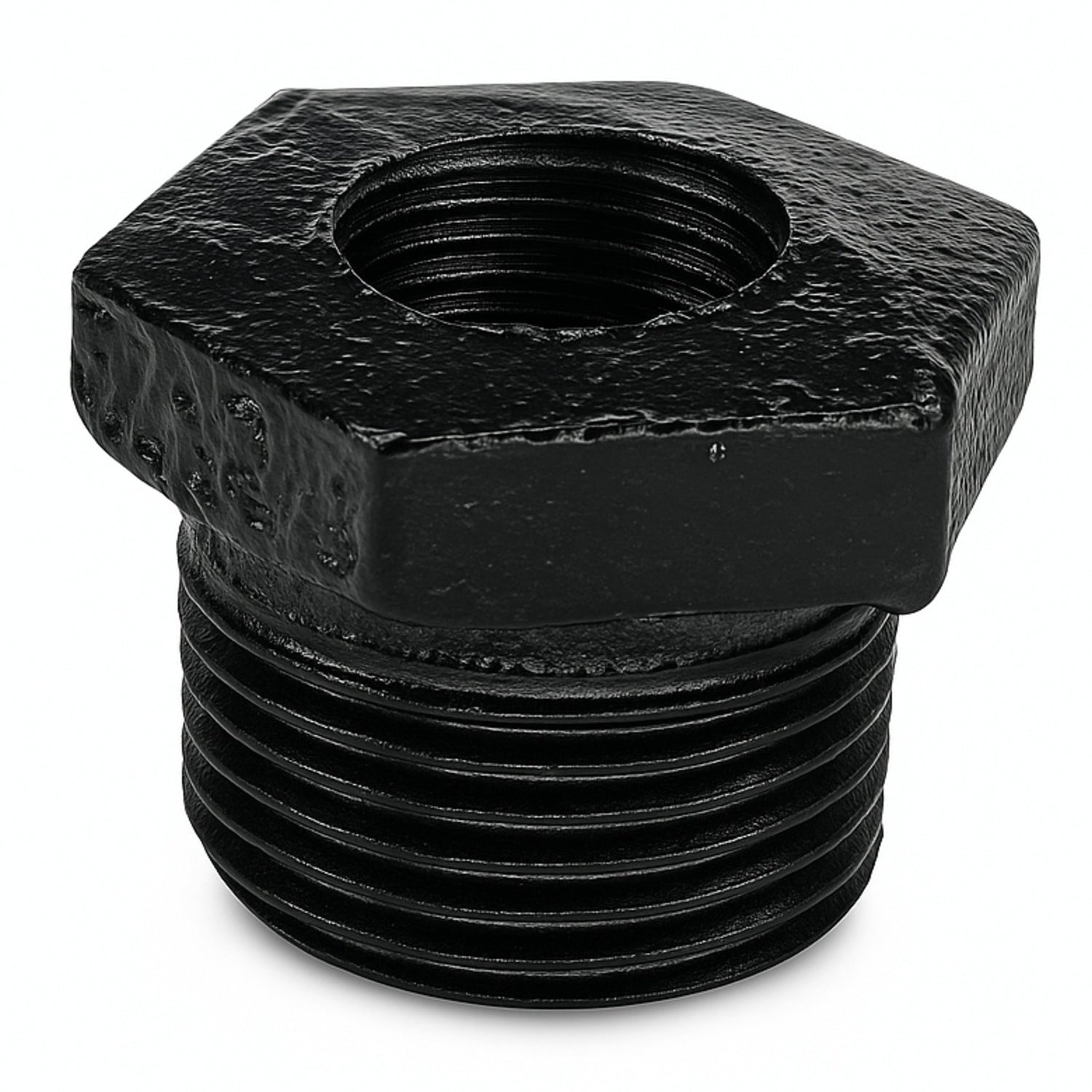 Esta reducción M/H pintada en negro permite conectar dos elementos roscados de diferentes diámetros en proyectos decorativos de estilo industrial. Con su rosca macho/hembra, se instala fácilmente sin necesidad de tuercas o manguitos adicionales. Diseñada con fines estéticos, no es apta para fontanería a presión.