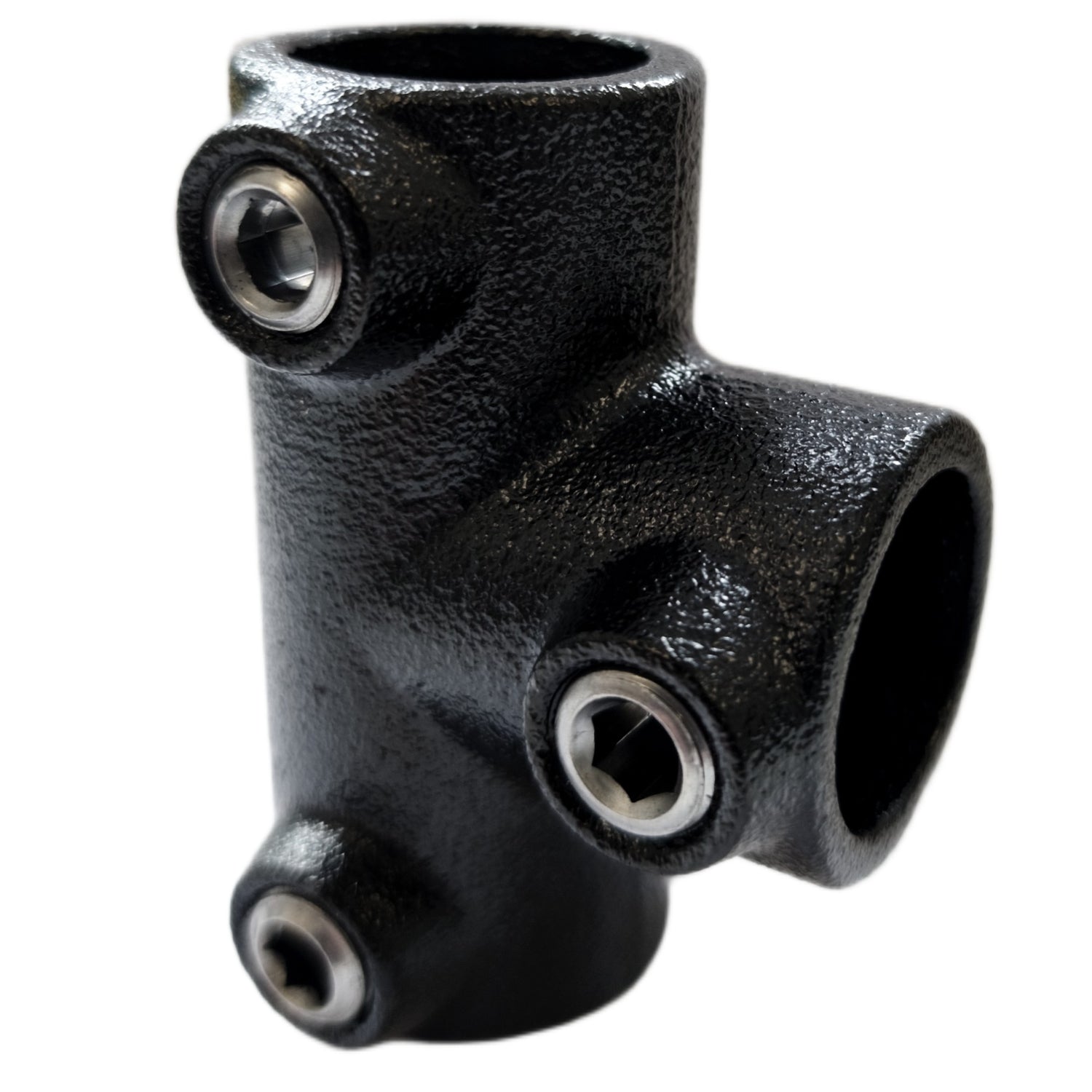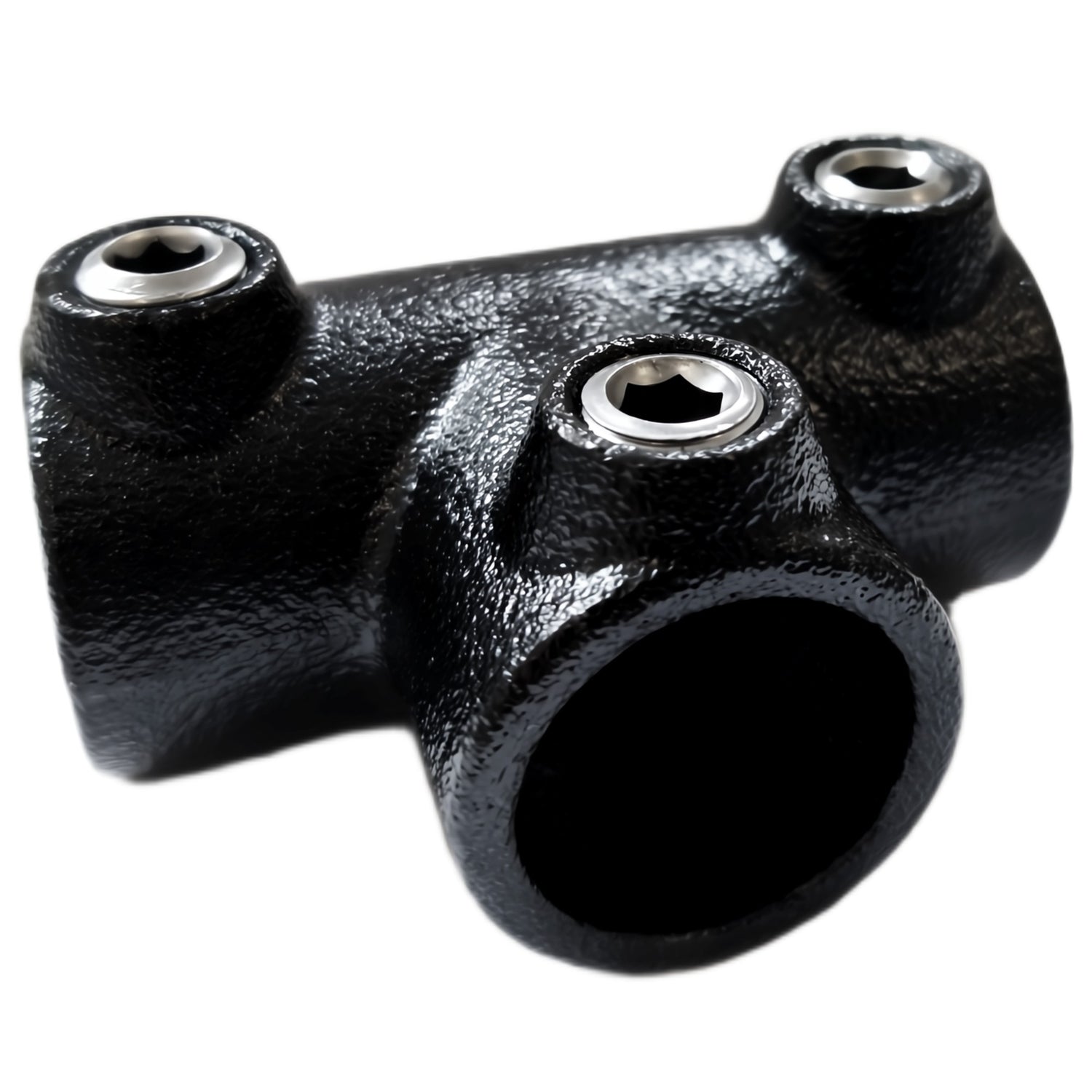 El conector en T con tornillo BTR con acabado negro permite unir tres tubos perpendiculares en tus estructuras decorativas de estilo industrial. Gracias a su sistema de fijación con llave Allen, ofrece una sujeción firme y discreta sin necesidad de roscas ni soldadura. Este racor en T es ideal para crear estructuras metálicas complejas, manteniendo una estética sobria y moderna.